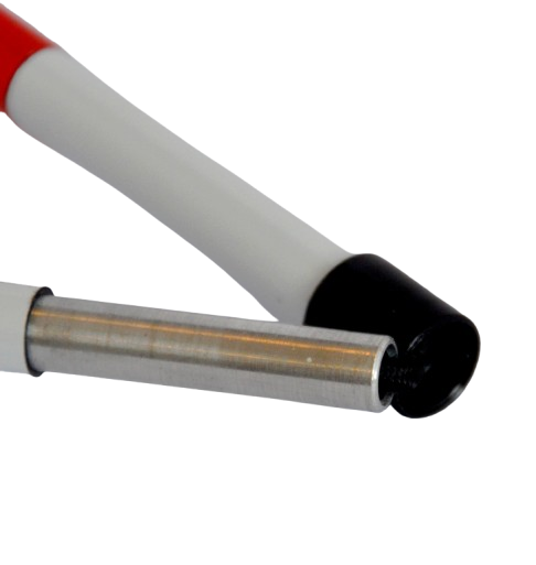 Ambutech markeringsstok kommer som standard med en “kridtspids” – dvs. en hvid afrundet