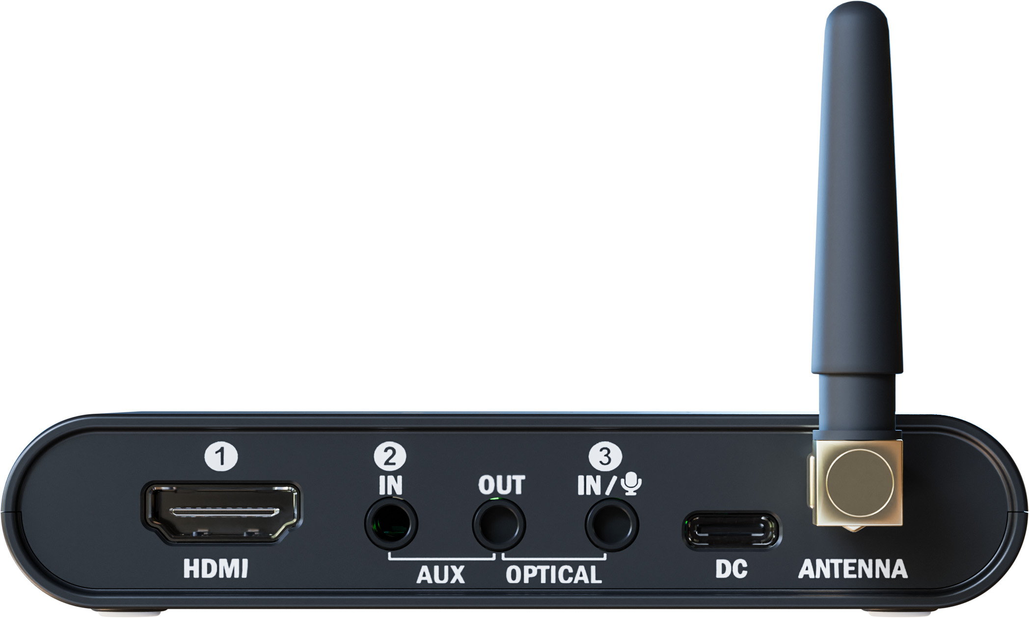 - Indgange: Toslink, HDMI, analog, USB-C-stik til strømforsyning